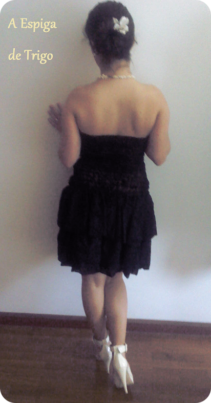 Para o casamento a que fui no sábado optei por um vestido curto preto rendado, legitimamente vintage, a contrastar com sapatos e acessórios brancos. Em teoria, não é suposto usar-se preto em casamentos, mas cada vez mais se vê gente assim vestida e, pessoalmente, prefiro ver os convidados com cores mais sóbrias.